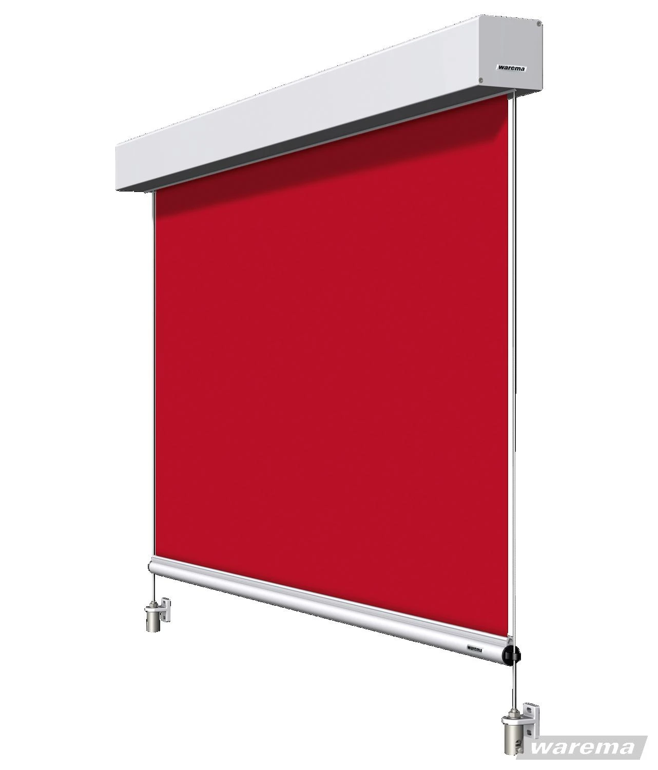 Rotes Rollobild mit Aluminiumkassette als Markisolette